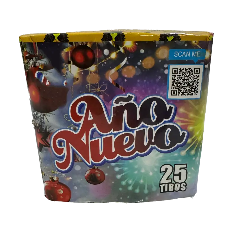-Torta año nuevo de 25 tiros de pirotecnia de varios colores y efectos