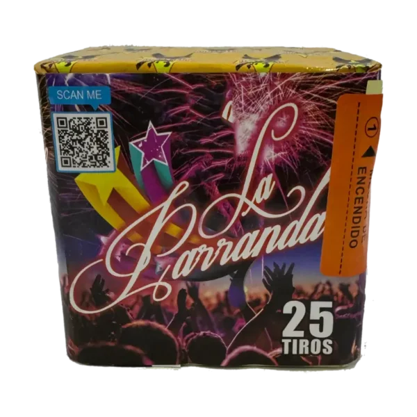 -Torta la parranda de 25 tiros de pirotecnia de varios colores y efectos