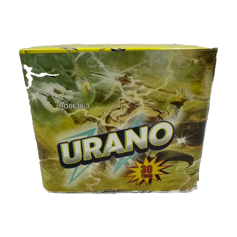 -Torta Urano 30 tiros de pirotecnia de varios colores y efectos.
