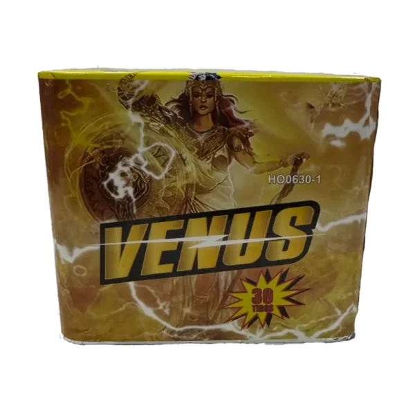 Torta Venus de 30 tiros de cañón 0,8″, producto pirotécnico aéreo con efecto de pirotecnia con explosión multicolor marca magia y color.